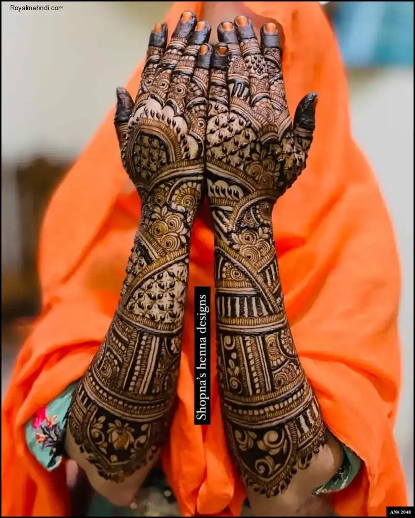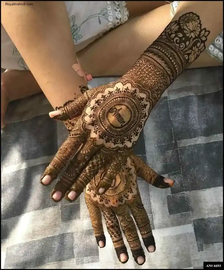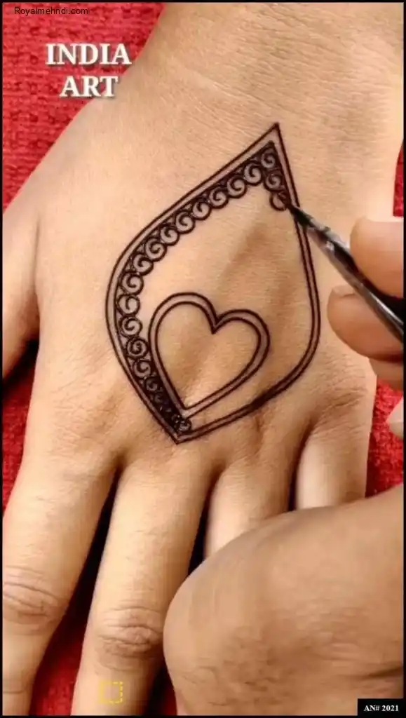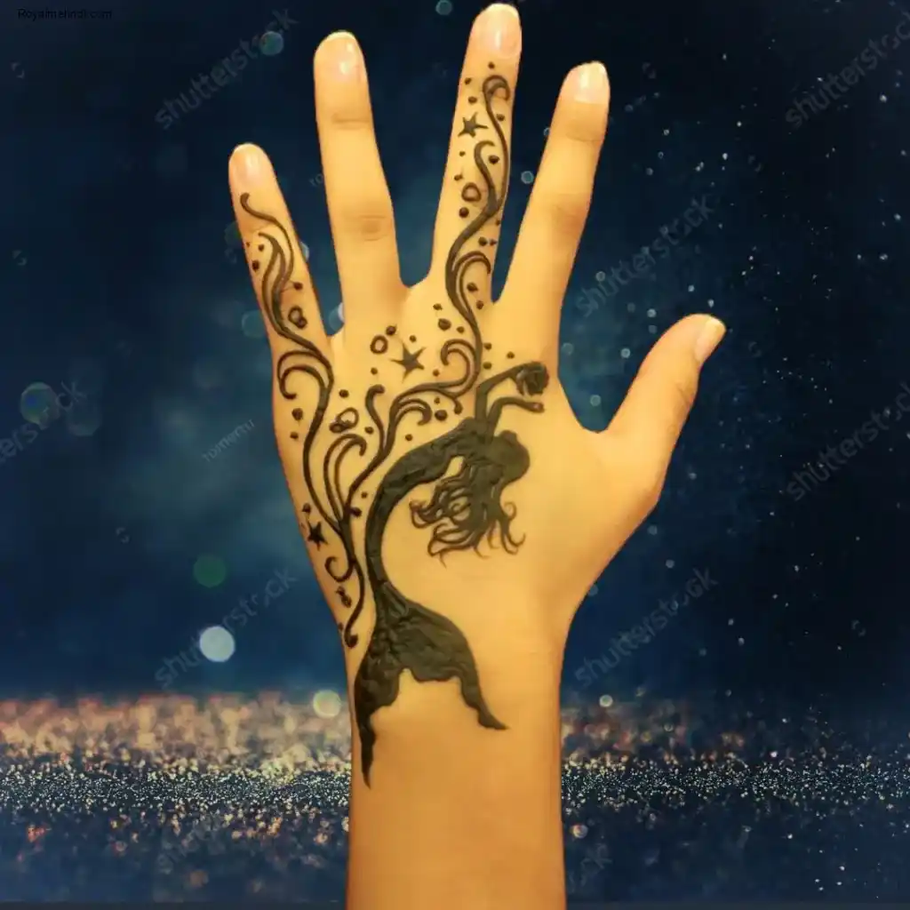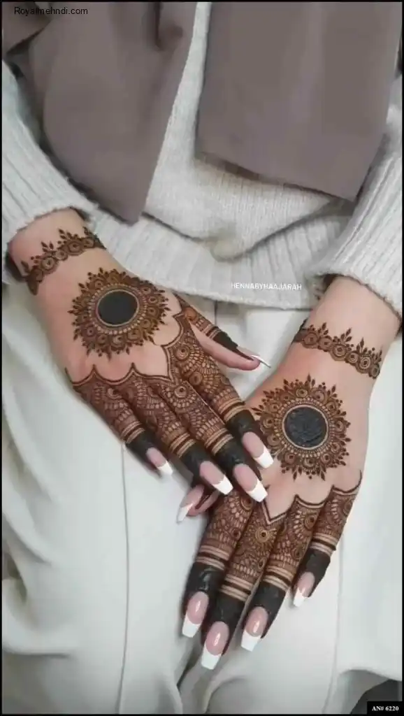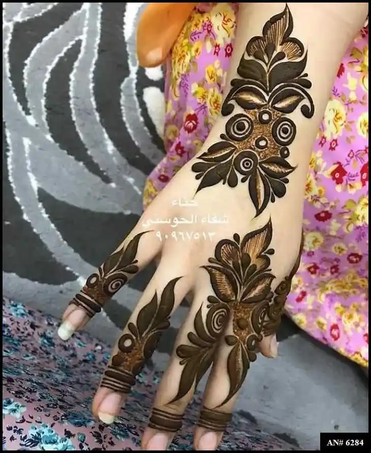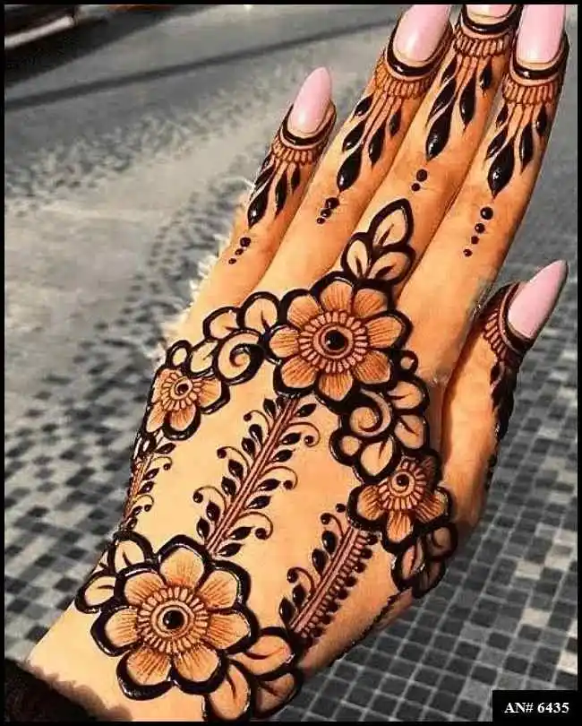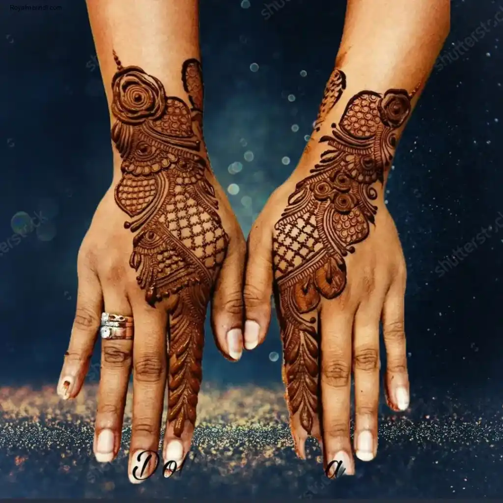 Many straight forward simple back hand Mehndi designs use negative space to create a modern flair giving them a refined and exquisite look. The fingers may have elaborate mesh designs, tiny leaves or tiny dots for detailing. Modern Mehndi designs understated style makes them perfect for festivals, bridal celebrations and informal events where a delicate yet sophisticated back hand Mehndi presentation is desired.